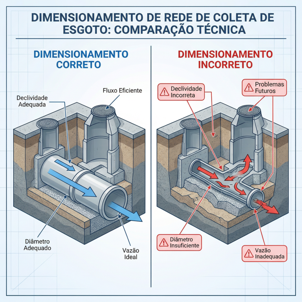 O dimensionamento de rede coletora de esgoto exige equilíbrio entre critérios hidráulicos, operacionais e projeções futuras. Mais do que aplicar fórmulas, é necessário compreender o comportamento do sistema ao longo do tempo.